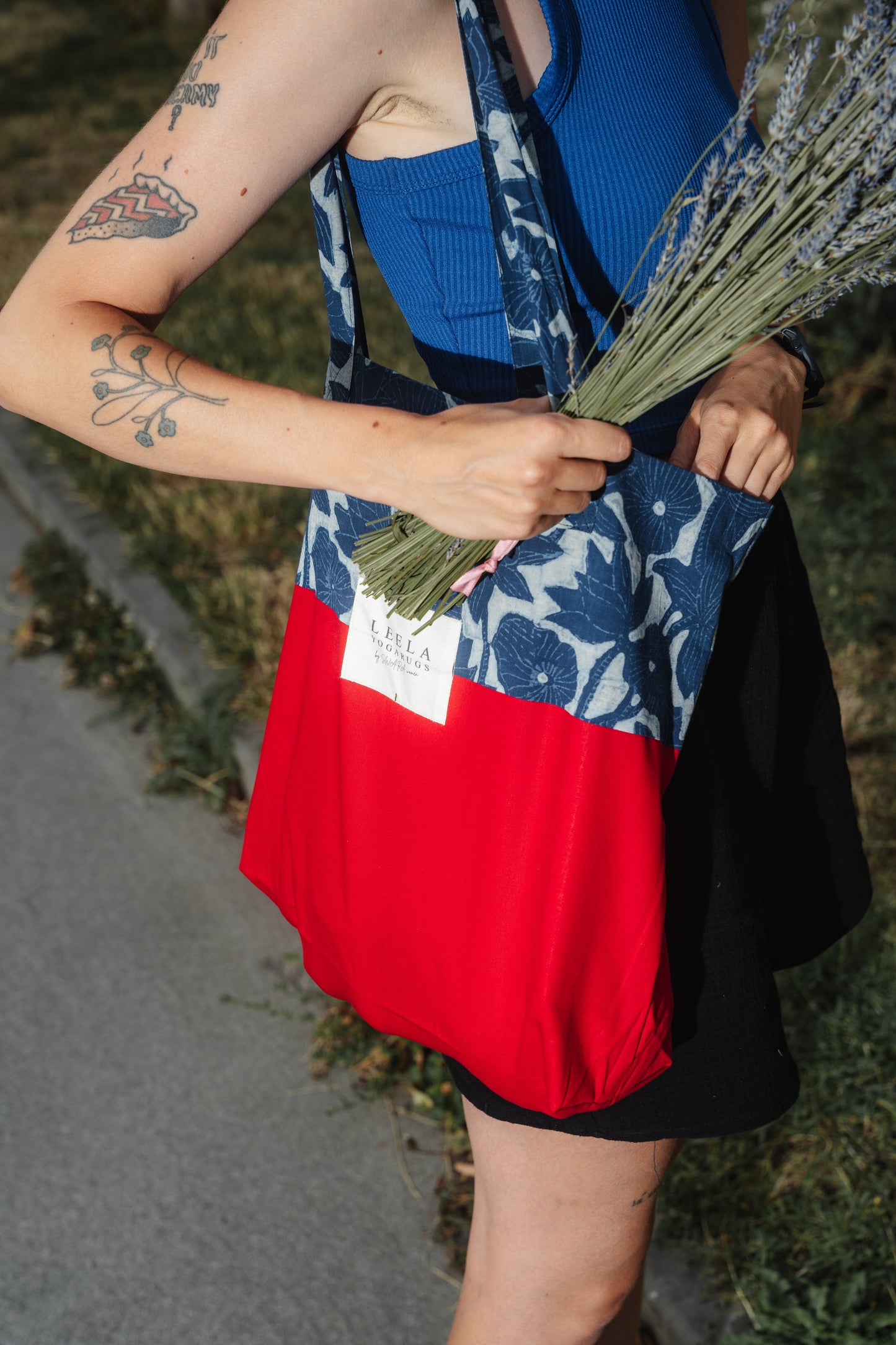 This tote bag was primarily designed to carry your Leela yoga rug! It is big enough so you can fit in all your yoga accessories & yoga clothes.