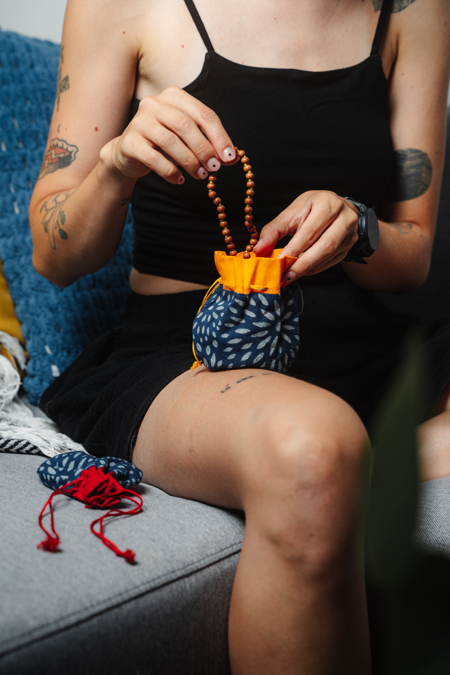 This Japa mala has been hand-knotted by Monika, co-founder of LEELA. It is one of her favorite practices to knot the malas.